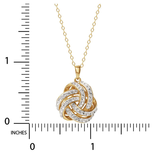 Fine Women'S Love Knot 18K Gold Crystal Pendant and Earring Set